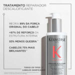 Deixe o Kérastase Concentré Décalcifiant Ultra-Réparateur agir sem enxaguar e aplique o Kérastase Première Bain Décalcifiant Réparateur em seguida para uma ação extra de decalcificação e reparação. Finalize com o Fondant Fluidité Réparateur para resultados ainda mais transformadores.